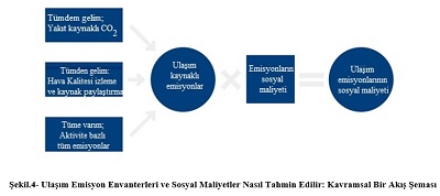 ▪Sosyal maliyet değerlendirmesi: Ulaşım emisyonlarından kaynaklanan sosyal maliyeti paraya çevirin ve belirsizlikler değerlendirilir.