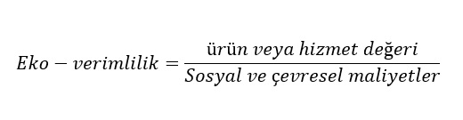 Aynı ürün veya hizmet değeri için ne kadar az sosyal, çevresel ve kaynak kullanılırsa sistemin (veya ekonominin) eko-verimliliğinin o kadar yüksek olduğunu söyleyebiliriz. Bu nedenle terim, ekolojik ve ekonomik verimliliği birleştiren sürdürülebilirliğe yönelik bir yönetim felsefesi ile eş anlamlı hale gelmiştir. Eko-verimlilik, sürdürülebilir kalkınmadaki göstergelerin kilit performanslarından biridir. Eko-verimlilik göstergeleri, farklı şehirlerin ve ülkelerin sürdürülebilir performansını ölçmek için kullanılabilir. Ayrıca politika yapıcıların ve karar vericilerin bir şehrin veya ülkenin ekonomik büyümesini çevresel ve sosyal refah ile birlikte dengelemelerine yardımcı olarak daha iyi çözümler bulmalarını sağlayabilirler. Genel olarak, eko-verimlilik aşağıdaki formül kullanılarak hesaplanabilir: [1].