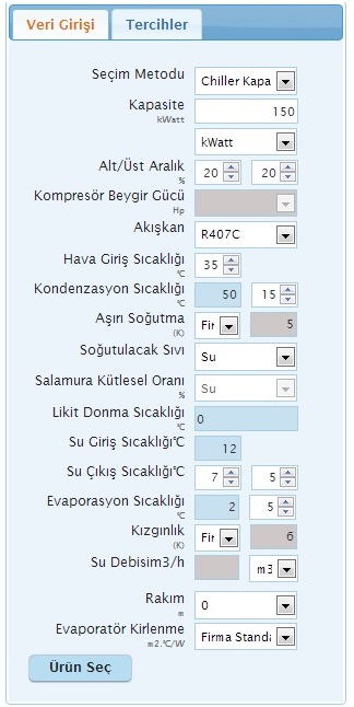 • Chill-Sim yazılımında kullanıcılar tercihlerine göre ürün filtreleme yapabilirler. Tercih tipine bağlı olarak alternatifli seçim veya çoklu seçim kullanılabilir.