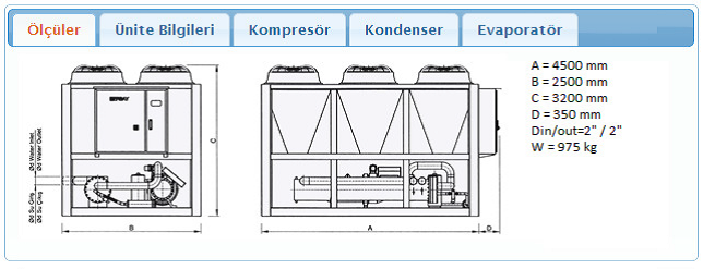 4. Chiller kapasitesi=580 kW, soğutucu akışkan R134A’dır.