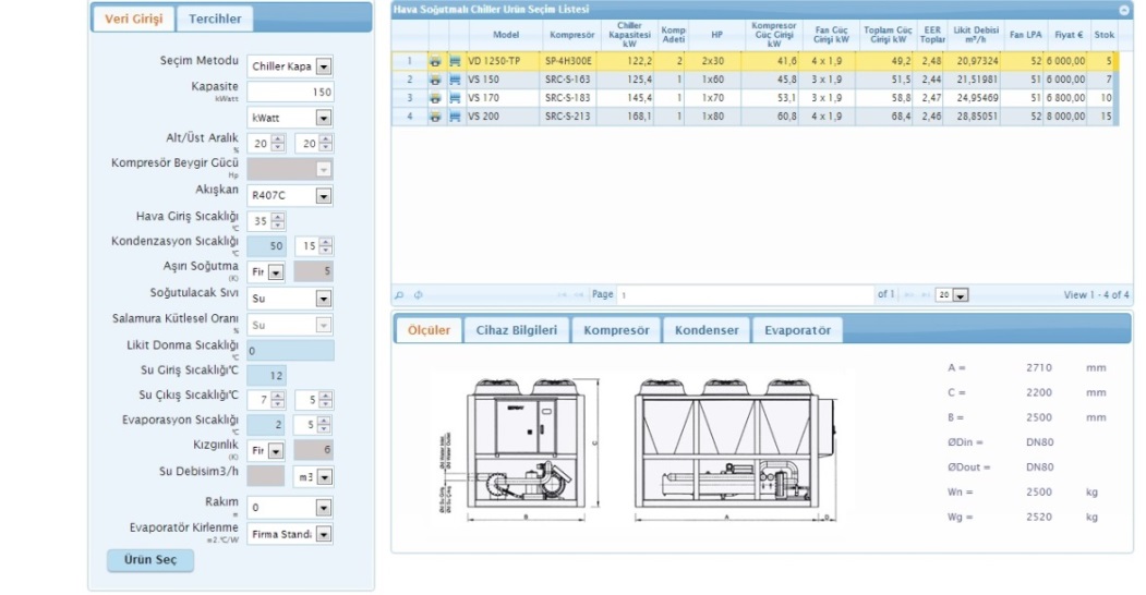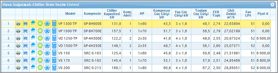 • Ana ekrandaki seçim listesinden istenen chiller için yaşam dönemi maliyet hesaplama butonu tıklanarak hesaplama yapılır ve çıktı sayfası oluşturulur.