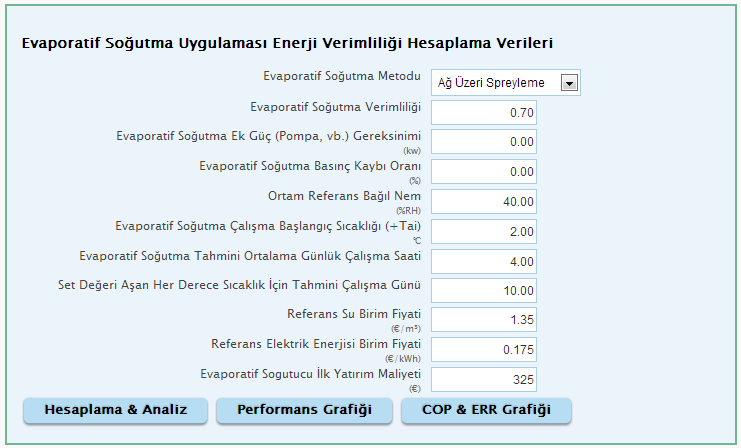 • Evaporatif soğutma uygulamasının veri giriş ekranı aşağıdaki gibidir: