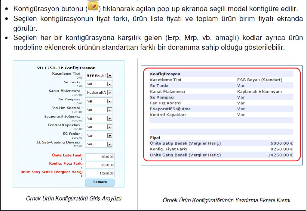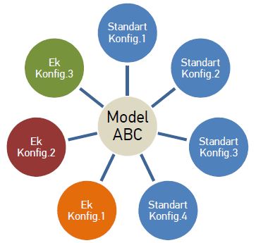 • Ürün konfigüratörü sayesinde standart ürün modelleri üzerinde bulunan donanım konfisürasyonuna ek olarak farklı alternatifler yaratılabilir.