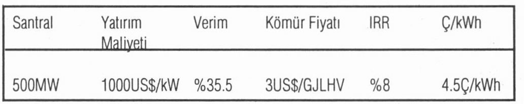 Desülfürizasyon ünitesi olan konvansiyonel kömür santralleri için aynı bazdaki hesaplama 4.5 cent/kWh olmaktadır.