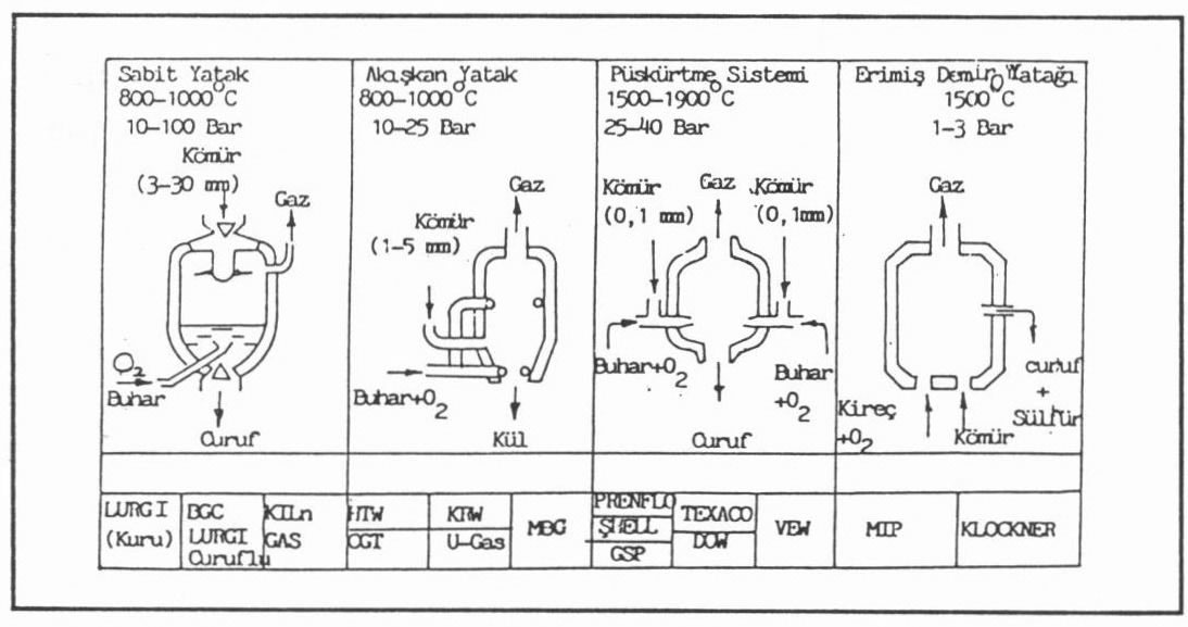 Kömür Gazlaştırma konusunda çalışan 26 uluslararası firma dört ana başlık altında toplayabileceğimiz gazlaştırma sistemlerini geliştirmişlerdir (2).
